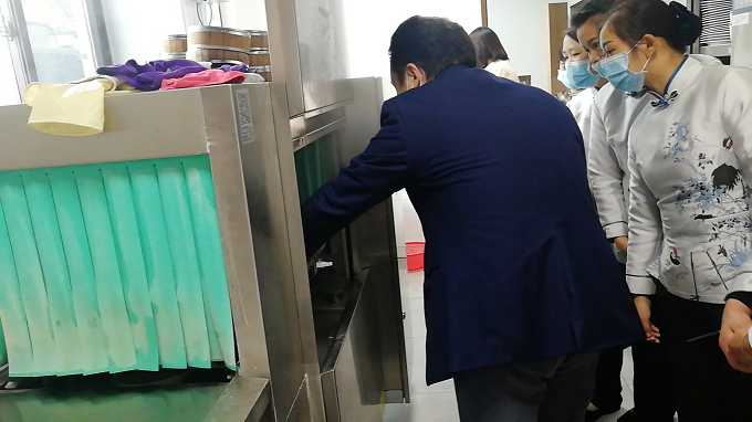 洗衣房正在培訓如何使用機器以及使用注意事項